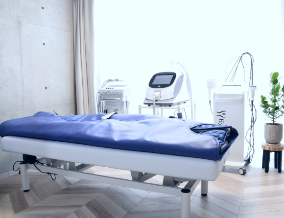 リジュベネーションシステムの特徴的な施術である、ファットレスマットレスで自律神経部位を緩めながら全身の皮下脂肪、内臓脂肪に一気にアプローチ。体の深部まで温めることで血液やリンパの流れを改善。 首、肩、背中、頭皮、顎ラインまで40分間しっかりケアします。男性にも大人気で気持ちよくて寝てしまう方が多いです。